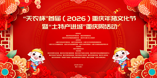 渝味年猪香,土货进山城。1月23日至29日,“天农杯”首届(2026)重庆年猪文化节暨“土特产进城”重庆周活动将在大渡口区步行街主会场与金鳌田园分会场同步举办。活动以重庆传统年猪文化为纽带,搭建“产—供—销—游”一体化平台,助力优质农特产品走出乡村、走进城市消费市场。