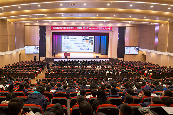 “每一项基础研究的进步,都可能为人类健康带来革命性改变。”他的话语不仅普及了科学知识,更在青少年心中播下了“用科学守护生命”的种子。此外,他还以AlphaFold为例,剖析了人工智能在蛋白质结构预测、药物研发中的颠覆性作用,表明人工智能给生命科学带来的“持久挑战与无限可能”,引发了现场师生的深度思考。