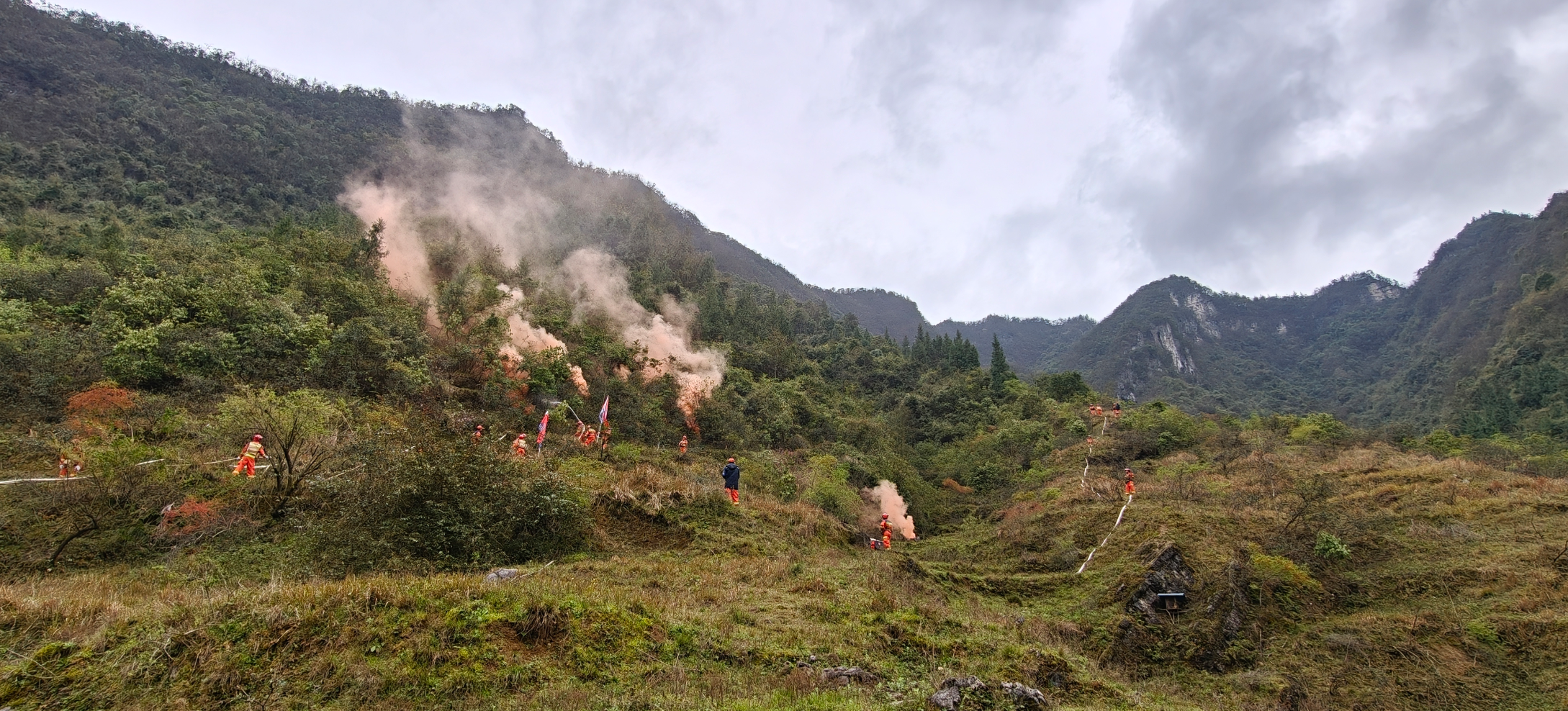 “秀山县溪口镇发生较大规模森林‘火情’,立即启动应急预案!”训练模拟秀山县溪口镇因持续干燥突发较大规模森林火灾,火点分散、火线绵长,火势迅速蔓延。
