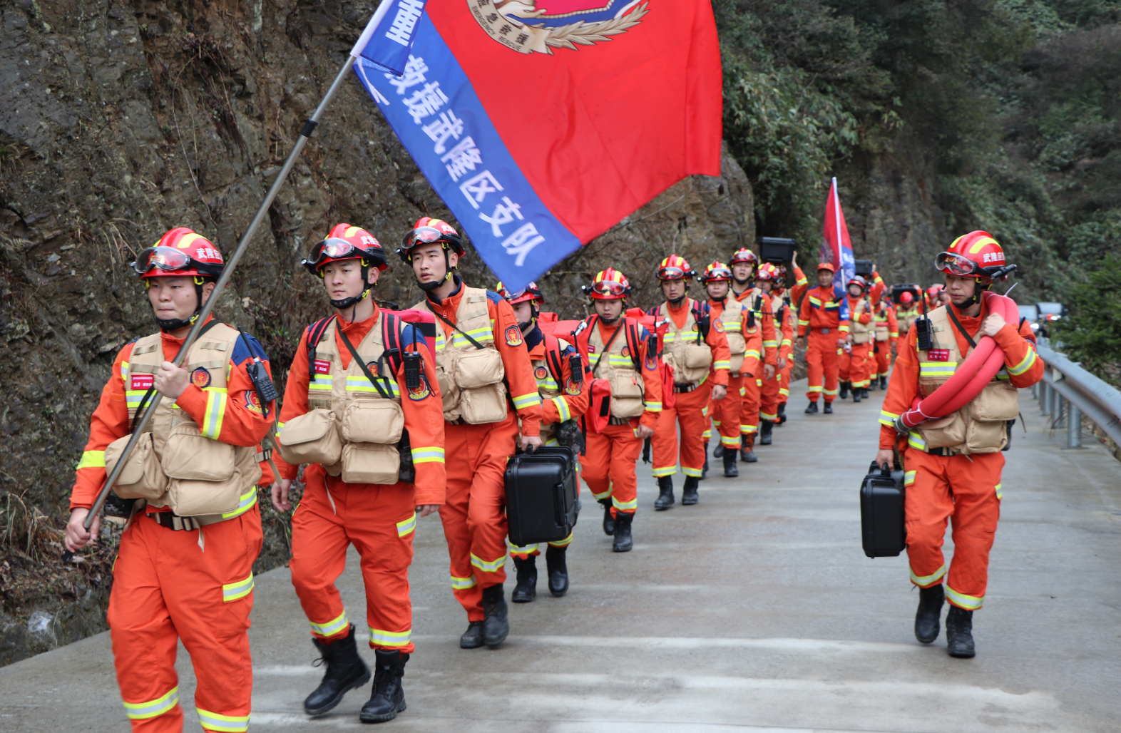 面对突发“火情”,市、县、镇三级应急机制迅速激活:镇值班干部第一时间核实情况,组织乡镇扑火队、民兵利用现有装备开辟初期隔离带、疏散群众,并及时报告火场信息;秀山县应急管理局立即调集县级力量先行驰援,同时向重庆市应急管理局请求增援。接到调度令后,重庆市专业应急救援总队渝东南支队、通信支队及各片区专业救援支队迅速响应,收拢人员、清点物资、规划路线,编队向秀山方向疾驰。