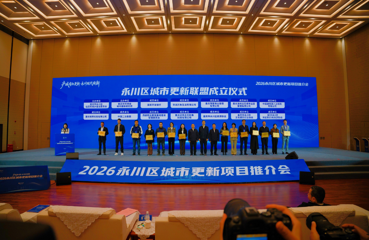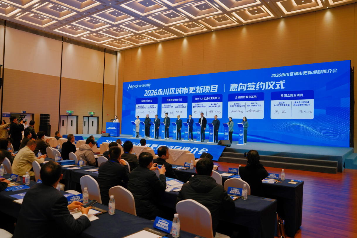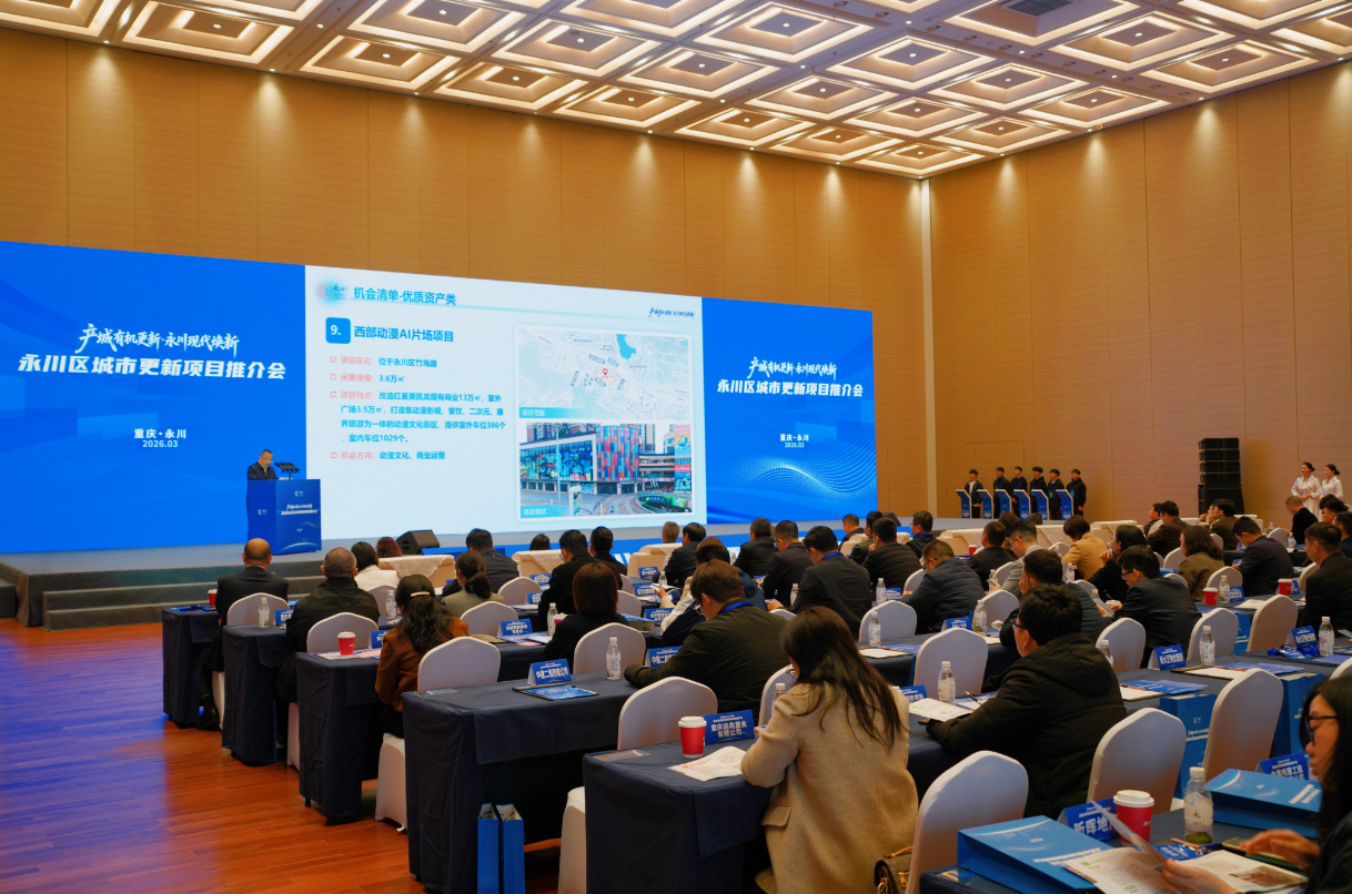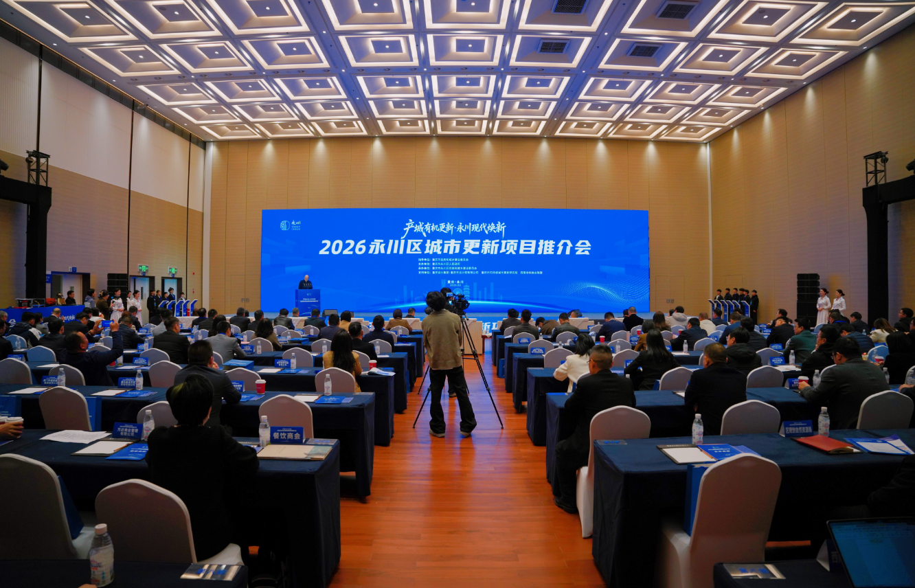 3月20日,2026重庆市永川区城市更新项目推介会举行。来自全国的产业、运营、投融资、建设、开发及智库等80余家城市更新领域企业负责人、行业专家参会,共商城市更新新机遇、共绘产城融合新蓝图。