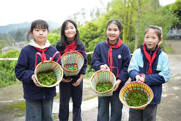 南川区鼓励孩子们走进大自然,可在春日茶园体验采茶的乐趣。(南川区教委供图)